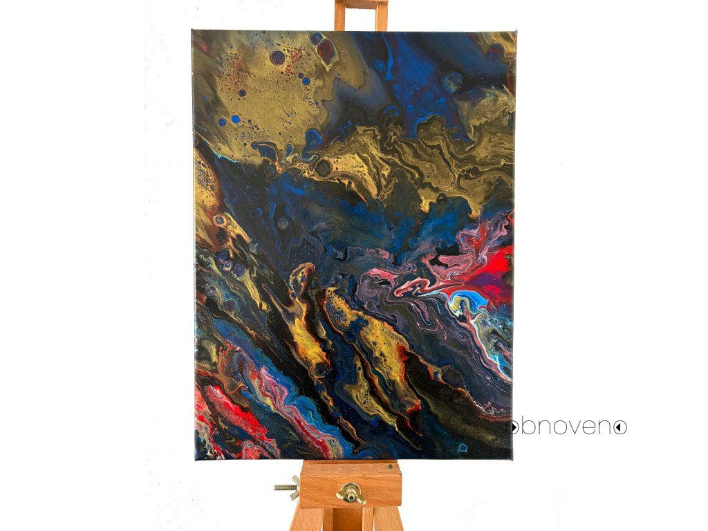 Obraz vytvořený technikou akrylového pouringu - akrylovými barvami. Podkladový materiál plátno na dřevěném rámu. Povrchová úprava provedena bezbarvým akrylovým lakem. Dekorativní předmět vhodný do interiéru.